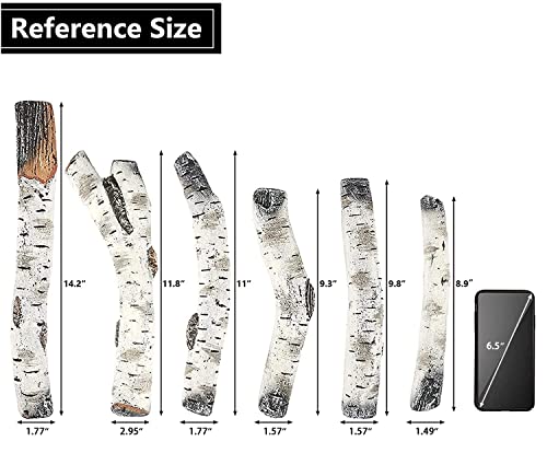 - 【Dimension】- Each log is approximately 14.1 - 8.8 inches long x 1.5 to 2.95 inches in diameter. Suitable for your fireplace or fire pit. 【Package】- 6pcs birch logs sets ➤If you have any questions about the goods you have received, please contact us and we will try our best to help you solve them, finally,The white ceramic logs is small size, please check the size before purchase