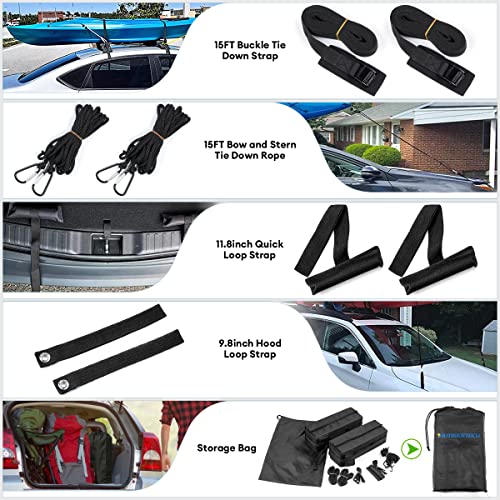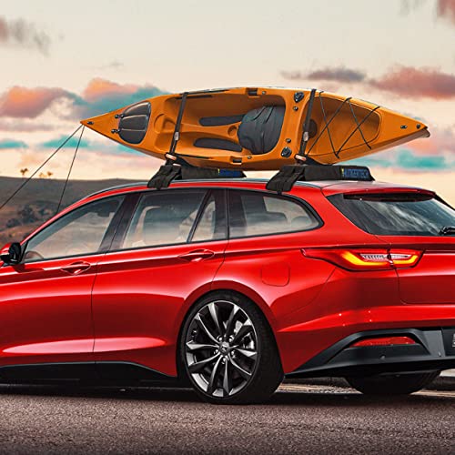 - Easy to Install and Carry: No tools required, roof rack set includes 2 ties sown straps, 2* tie-down ropes, 2* heavy duty tie down strap with lock, 2* quick loop straps, 1*storage bag for carrying. Just attach the pads to your car's roof and hold the load in place.