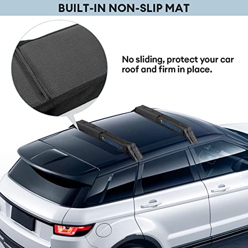 - Premium Quality: The carrier rack is made of multi layer foam EVA foam and 400D nylon, the anti-slip mat can protects your car roof surface from getting scratches, effectively fix tightly and reduce the vibration during transportation.