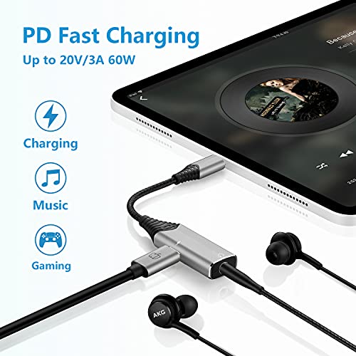 - 【2-in-1 Charging and Listening Simultaneously】 This USB-C headphone adapter connects 3.5mm headphones to devices with USB-C ports with high quality and lossless sound up to 24-bit/96kHz and also connects a USB-C cable to charge your device up to 20V/3A (60W). Calling, volume and other music controls are also permitted, which depend on your headsets.