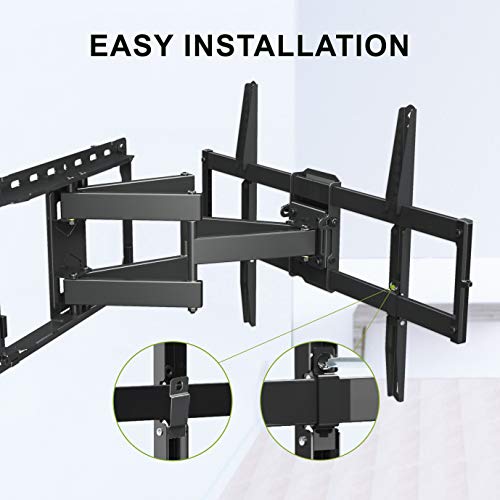 - 👍【ADJUSTABLE VIEW COMFORTABLE】This TV bracket with dual articulating arms includes +5° /-15° tilt, ±45°swivel( maximum swivel angle depends on your TV), +/-3° post-installation adjustment allows the perfect TV leveling. All these will make your TV flexibility and better view based on your seat in the room.