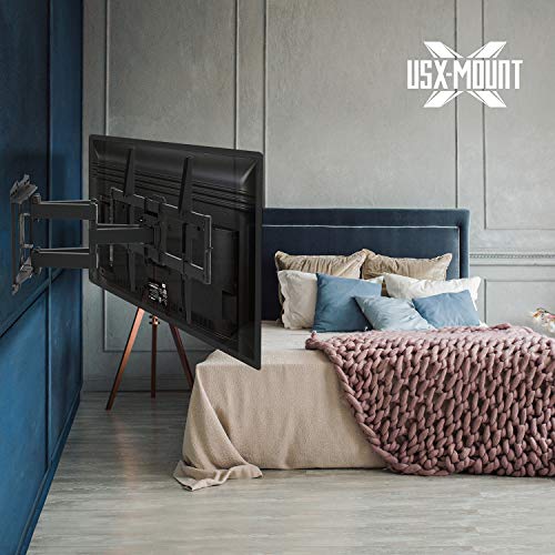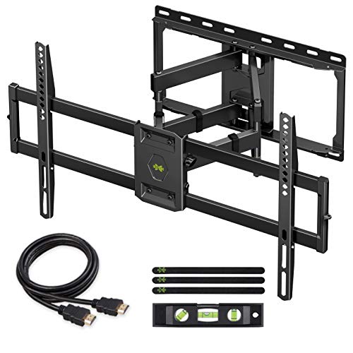 Details: Universal TV Mounts This full motion TV wall bracket includes all features you need. Extend out 16.49" and swivel +/-45° to give any seat in the house the perfect viewing angle. Even above the fireplace, you can tilt it up 5° or down 15° to find the perfect position you want. Also, this mount sits only 2.40" from the wall when retracted in, ideal for those large TV. More Wall Mounting Options Concrete wall, 12inch, 16inch wood studs spacing with one piece of wall plate, you have no worries with this mounting system. Easy Installation Install it in 3 Easy Steps: Install this TV mounting bracket on the wall - Mount the brackets on TV - Hang the TV and Screw tight! The job is done!Accessories and More Included Everything you need out of the box (Hardware Set, HDMI) Labeled hardware set helps get install the mount hassel free. Leveling torpedo included to achieve the perfect angle. Extend the power of your TV with our free high quality 6 feet long HDMI Customer First, Quality First Customer first and quality first are our business principle. Our US-Based customer support are always ready to help. If you have any concerns before you purchase or any installation problems, you can feel free to contact us. 10 years Guaranteed!Your Safety is Our PriorityWe have over 20 years TV mounts manufacturing experience. All of our TV brackets are designed, produced and tested with the highest international standards. Trusted by thousands of families and companies who have installed our safe mounts into their spaces.