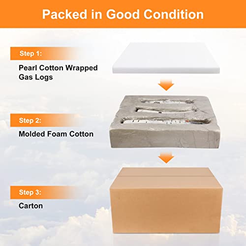 - 🔥【Easy to Maintain】- As the fireplace gas logs don't produce ash and charcoal when burning, so they are easy to maintain. You can clean it annually. 【Packing List】- The fireplace gas log set