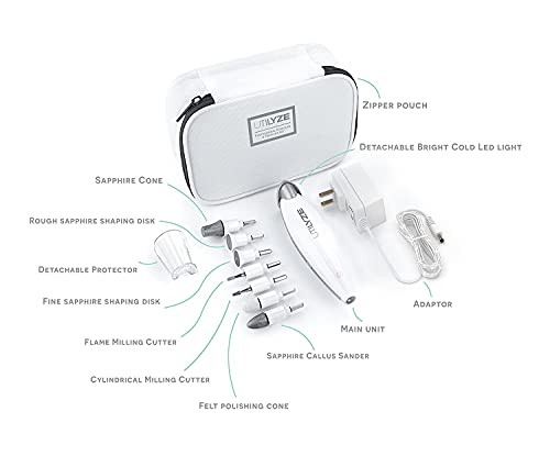 Details: Complete Manicure & Pedicure Kit For Natural or Acrylic Nails. File, Buff, Smooth, Shine Nails, Remove Ingrown Toenails, Cuticles & Callus at Home Experience the power of professional salon-quality manicures and pedicures in your hands without ever leaving the comfort of your home. Whether you have natural or acrylic nails, this device is perfect for you. Say goodbye to expensive trips to the salon & hello to beautiful, glowing nails every day in just a few seconds!