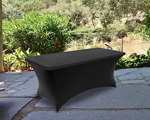- DESIGN: The 6-foot tablecloth always fits and fits perfectly. The 2-way stretch spandex table cover is designed with reinforced leg pockets for the table legs to give it a tight and professional look, and your table cover won't slip or expand again because of this special design. The 6-foot tablecloth fits a table measuring 72" LX 30" WX 30" H