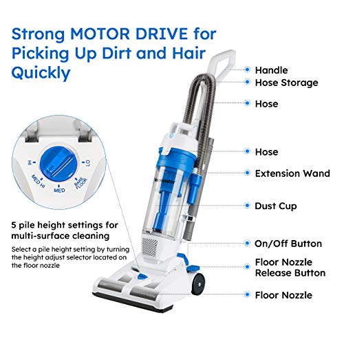 - 【Multifunction Operation】Upright Vacuums are designed to clean Carpet, Hard floor, Pet Hair, Sofa and Curtain. Washable foam filter captures the smallest particles of dust, dander.