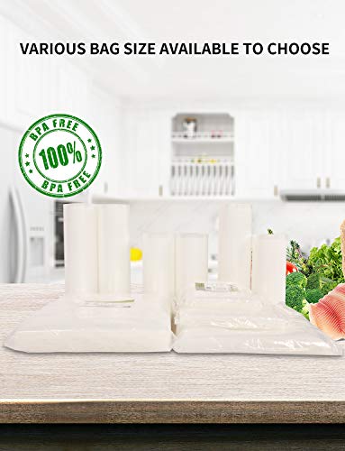 - BPA FREE! 100% SAFE FOR FOOD- All of our vacuum sealer bags are BPA free and test for multiple times to ensure your safety with food. Everything is laboratory tested for safety. Safe for storing all food types: vegetables, fruit, raw meat, cooked foods, and more. It's also designed for freezer, refrigerator, microwave, boil, and sous vide use. 100% safe to use!