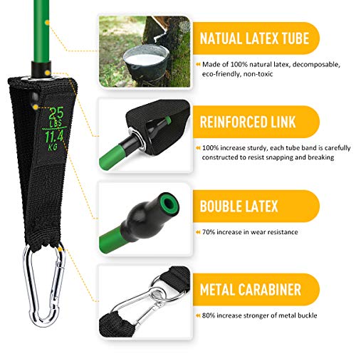 - [Latex tube life is 70% longer than TPE tube]: Workout resistance tube bands made of 100% natural latex, decomposable, eco-friendly, non-toxic.Latex tube is 3 times more extensible than TPE tube. With Good elasticity and non-slip handles, exercise bands provide maximum tough resistance. Assisting you to get faster and more effective