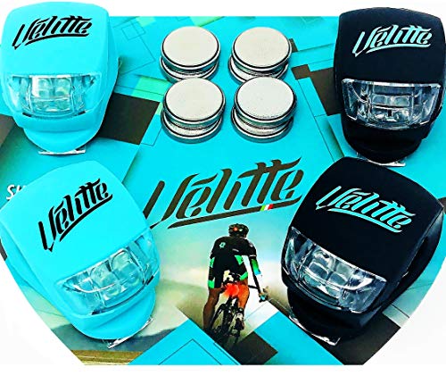 - 🚴🏻VELITTE PREMIUM LIGHTWEIGHT SILICONE BODY: Flexible Silicone body no extra weight in your rides or bikes. We have chosen carefully our Premium Velitte LED Flashlight Lighting Silicone Body to stand up for any weather any road and even low impact drops. In your helmet like a miners head or any of your accessories. Cat Eye Light for use at night para tu Bicicleta. It also applies for Runners or any outdoor sports. This Reflectors have enough battery life for your rides with total control.