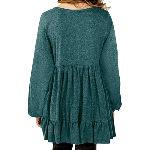 - Feature:Round neck with lantern long sleeve,Pleated loose swing pullover tops with tunic length,solid color, ruffle, simple and plain, tiered shirt, can be easily dress up and dress down.