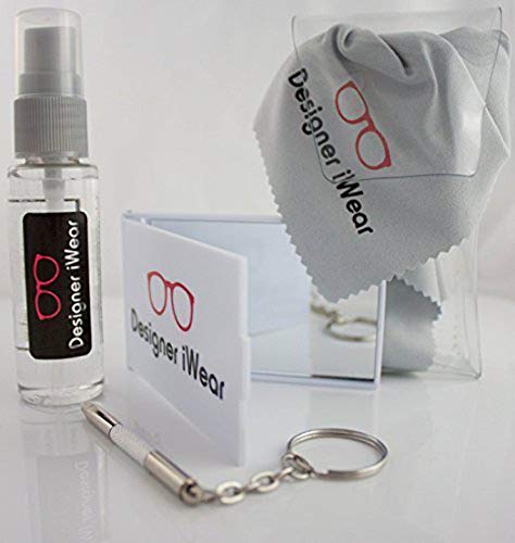 - 💥GREAT VALUE- FREE CLEANING KIT. Includes: a Designer iWear 1 ounce spray bottle, mirror, screw driver/key chain, and a folded microfiber cloth.
