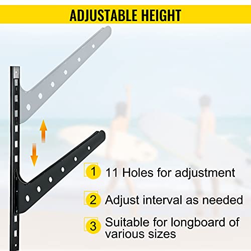 - Adjustable Size Design: Get organized in minutes with four screws through each track, then insert arms and store your surfboards. There are 11 holes on the push pin for height adjustment, which allows you to individually lock in each storage attachment to adjust the spacing between each level.