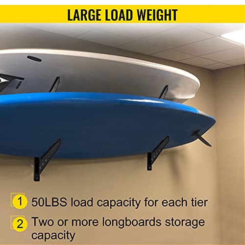 - 50 Lbs Load Capacity: Our premium surfboard rack highlights a 2-tier design to accommodate up to 2 or more boards of many kinds. 50 lbs capacity per layer (100 lbs total) fits surfboard, wakeboard, paddle board, and more.