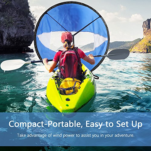 - HIGH STRENGTH MATERIAL: Made of eco-friendly strong cloth, this sail is durable and sturdy, which maintains sail shape even in high wind conditions. It won't turn a kayak or canoe into a complex, heavy sailing craft.