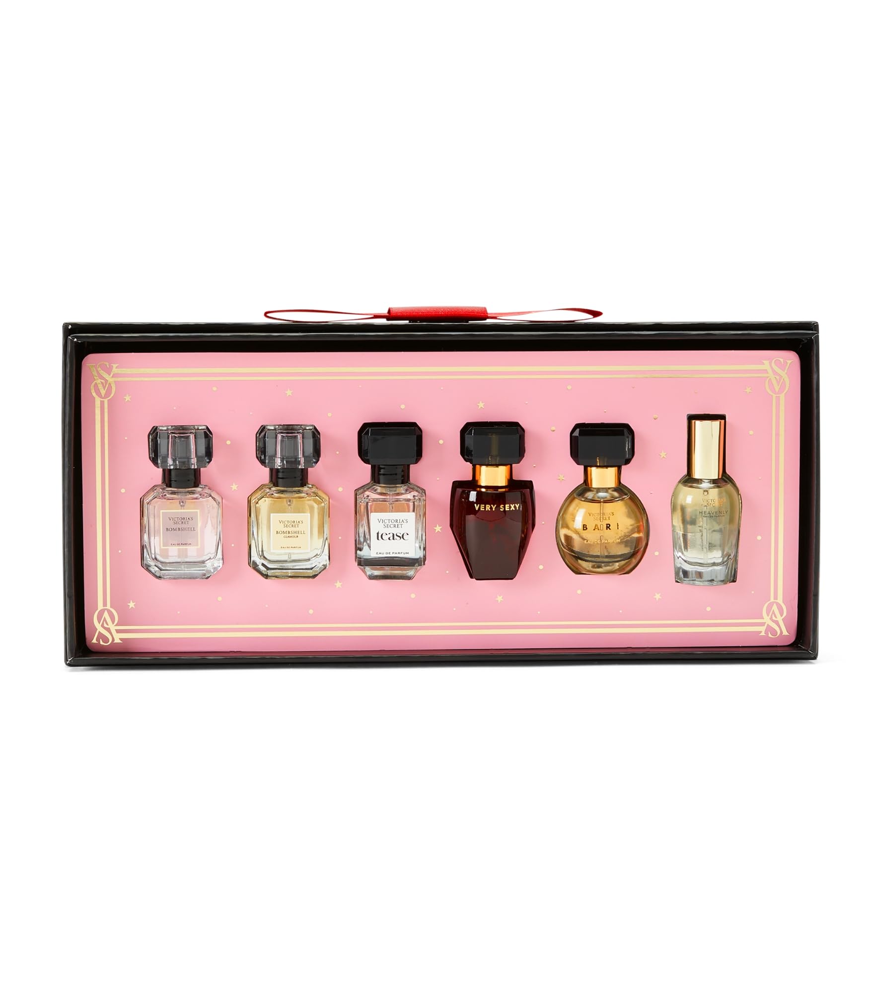 - Gift Set Includes: 0.25 oz. Mini Eau de Parfums in Bombshell, Bombshell Magic, Tease, Bare, Very Sexy, & Heavenly