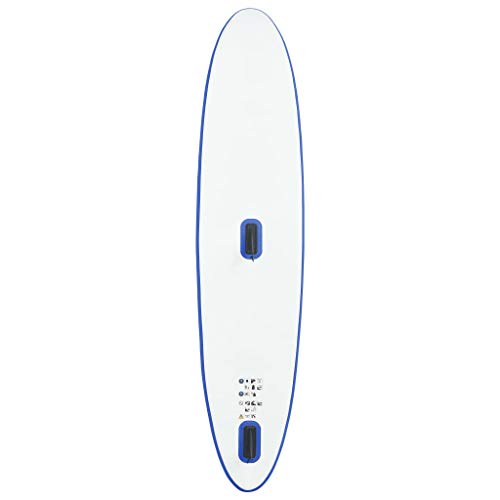Details: The SUP board with sail is ideal for learning, recreational paddling and small wave riding with comfort and stability.Equipped with special high-pressure screw valves, it is easy and quick to inflate and deflate. Two pre-fixed fins and one removable fin are durable to withstand the pressures of paddling. A practical carrying bag is included for easy and fast transport. Our SUP board is designed with the perfect level of curve, enhancing its rigidity for a more stable ride. This board glides effortlessly through flat waters and rides smoothly in the surf. The inflatable SUP board is puncture-proof and UV resistant and withstands extreme nautical conditions. Please note that this is designed for adults.Color: Blue and whiteMaterial: PVC, EVA, aluminium, fabric (100% polyester)Inflated dimensions: 129.9" x 28.3" x 3.9" (L x W x H)Fin size: 10" x 7.3" (L x W)Oar length: 84.6"Sail size: 3 m²Maximum number of persons: 1 adultMaximum load capacity: 220.5 lbsMaximum working pressure: 1 bar (15 psi)Puncture-proof and UV resistantDelivery contains:1 x Surf board1 x Oar1 x Sail1 x Removable fin1 x High pressure hand pump with high pressure gauge1 x Repair kit: Glue & 3-ply patch1 x Carrying bag