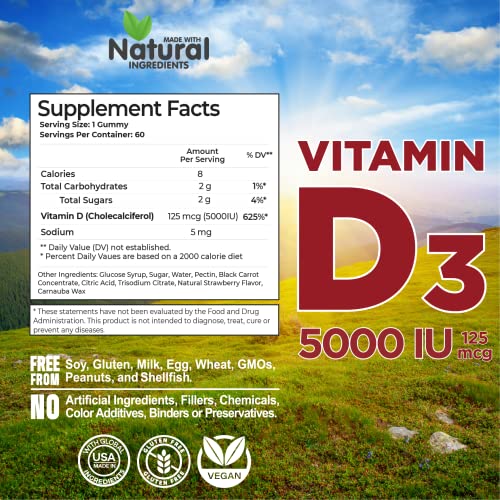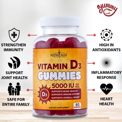 - Delicious Vitamin D3 Gummies: New Age Vitamin D3 5000 IU per serving is a Vitamin D Gummy essential to keeping strong teeth, bones, muscles, joints, and immune system to improve daily health and wellness