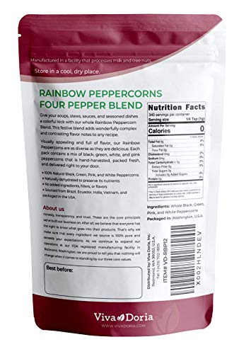 Details: Give your soups, stews, sauces, and seasoned dishes a colorful kick with our whole Rainbow Peppercorn. This festive blend adds wonderfully complex and contrasting flavor notes to any recipe. Visually appealing and full of flavor, our Rainbow Peppercorns are as diverse as they are delicious. Each pack contains a mix of Indian black and green, Malaysian white, and Brazilian pink peppercorns that’s hand-harvested, packed fresh, and delivered right to your door.