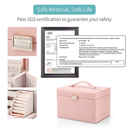 Details: Joyero organizador con textura de piel sintética de cocodrilo Vlando, para visualización collares y anillos, clásica funda de regalo, color rojo. Especificaciones: 1. Espejo en la tapa de 4.72 x 2.56 pulgadas de tamaño, con un logotipo de Vlando bajo el espejo. 2. Diseño especial de colgado automático para el compartimento de almacenamiento de collares cuando abras el joyero. Solo abre la tapa superior, este compartimento para almacenamiento de collar saldrá automáticamente al mismo tiempo. 3. Bandeja superior: 4 compartimentos separados: 3 compartimentos para aretes y 1 compartimento extra de almacenamiento de 3.15 x 1.97 pulgadas de tamaño en el medio. Ambos lados son 2 compartimentos grandes de 4.33 x 1.97 pulgadas de tamaño para almacenamiento de joyas grandes. 4. 3 cajones de lado izquierdo para guardar todo tipo de joyería, el primer cajón dispone de 4 compartimentos pequeños en el interior y los otros 2 cajones son para gran almacenamiento extra. El tamaño interior de cada cajón es de 4.53 x 4.33 x 0.98 pulgadas. 5. Una cubeta basculate con 6 ranuras para sujetar los anillos junto a los 3 cajones. 6. Diseño excelente, apariencia atractiva, estructura simple y fina mano de obra. 7. Compartimentos gemelos plegables exteriores con cierres a presión. Ideal para colgar collares, pulseras y otras joyas. Acerca de Vlando Vlando es una inspiradora marca reavivada por diseñadores Holandeses con una larga historia productos y soluciones para el hogar y la oficina finos de calidad. El nombre de Vlando viene de una historia de amor entre un joven diseñador de producto en cuero quien se enamoró desesperadamente de una hermosa chica llamada 'Lando'. Su primer hijo se llamó "Verney", y el nexo entre el diseñador, su amor y el retoño fue establecido en el nombre de la marca" Vlando. Hoy, creamos una renovada pasión como Vlando con un equipo de diseño internacional que redefine la manera en que almacenamos productos a diario nuestors artículos y cuidamos de ellos.