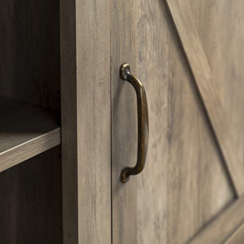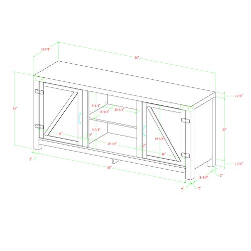 Details: Include our TV stand in your living room to give the area a charming, country feel. Features concealed storage space behind the barn styled side doors with adjustable shelving to fit your media and accessories, while having a mix of rustic and modern farmhouse style. This entertainment center is made of durable, high-grade MDF and can support most TVs up to 65-inches. As a storage console, it will keep your living room looking neat while also giving it a homespun feel.