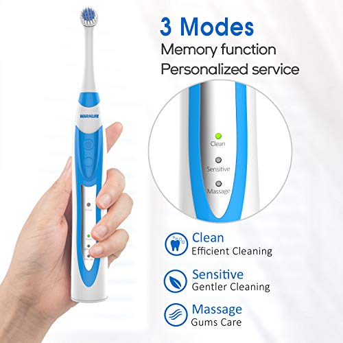 - 3 Modes: Clean, sensitive, massage, rotary electric toothbrush with 3 rotation modes to meet your different dental needs and preferences. Equipped with 2 electric toothbrush replacement heads, made of soft and durable DuPont nylon bristles. The round head surrounds each tooth, provides excellent overall cleaning. The mini head provides easy access to hard-to-reach mouth areas to thoroughly clean teeth and gums, allowing deep and precise cleaning every time.