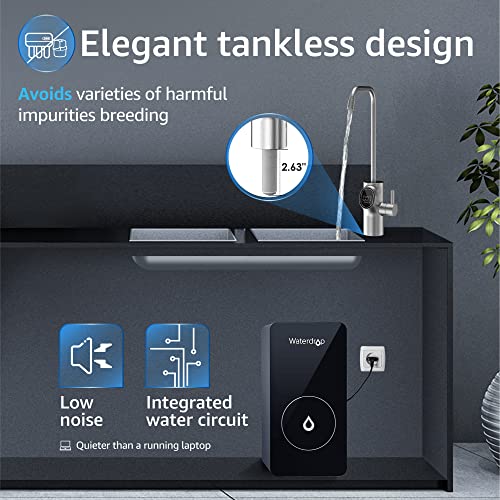 - 𝐓𝐚𝐧𝐤𝐥𝐞𝐬𝐬 & 𝐞𝐚𝐬𝐲 𝐢𝐧𝐬𝐭𝐚𝐥𝐥𝐚𝐭𝐢𝐨𝐧: The D6 RO water system employs a tankless design and a composite reverse osmosis filter. Compact D6 RO system saves 70% of your under-sink space and prevents recontamination than traditional system. DIY installation can be completed within 30 minutes. 𝗡𝗢𝗧𝗘: An electrical outlet is required to operate the RO system. The push-in replacement design allows you to replace the filter in 3 seconds, without moving the system or using any tools.