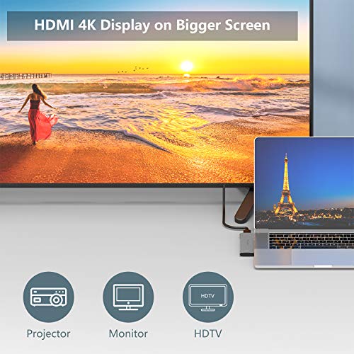 - 【Crystal Clear 4K Resolution】: Equipped with both HDMI and multi-function ports. HDMI supports up to 4K@30Hz, multi-function port supports up to 5K@60Hz or dual 4K@60Hz displays(extra adapter needed). You can also using the multi-function port and HDMI port simultaneously(HDMI 4K 30Hz, multi-function port 5K 60Hz). Note: This hub does not support triple display.