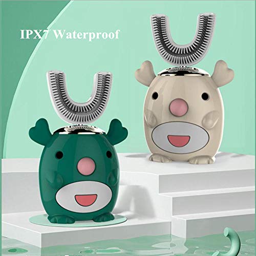 - The head with soft bristles, made of food-grade silicone material, safe and comfortable for toddlers and kids to use, protecting their gums from bleeding. The ergonomically U-shaped brush head fits the shape and mechanics of the kid’s tooth structure. The dense bristles 360-degree around the teeth deliver comfortable brushing feelings and it doesn't require any technique from kids. Pls rest assured that your kids to use it!