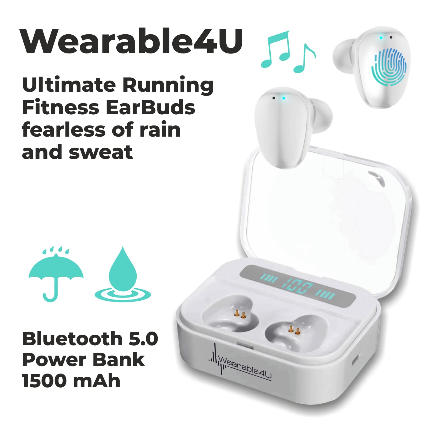 - WEARABLE4U E-BANK: Wearable4U USB E-Bank 2200 mAh. Keep your watches WEARABLE4U ULTIMATE EARBUDS + POWER PACK: Wearable4U 2 in 1 EarBuds + Power Pack contains Wearable4U Power Case1500 mAh, Wearable4U Bluetooth EarBuds Pro. Keep your device charged at all times and enjoy your music during sports activities with our Wearable4U 2in1 Earbuds Pro!charged at all times with our Wearable4U E-Bank (keeps at least one charge!)