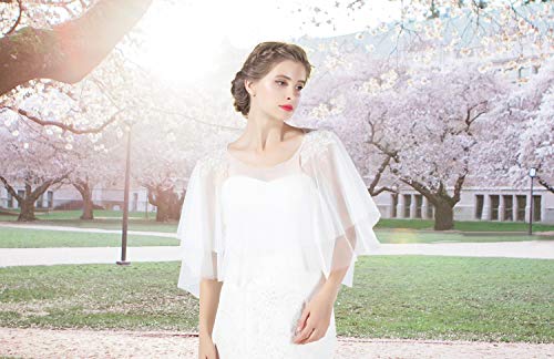 - PERFECT CHOICE TO ENHANCE AN OUTFIT: This vintage Bridal Lace cape is an ideal addition to a strapless wedding gown,which turns a simple sleeveless wedding dress into a fantastic dress,looking more feminine & gentle.
