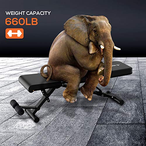 - 【30S TO ASSEMBLE】- Easy to Foldable & Carry strength training benches ,only 4 parts for fixing ! Performing exercises without taking up too much space in your home. Can put it in the corner or under the bed when you finish workout.SAVE 80% SPACE.