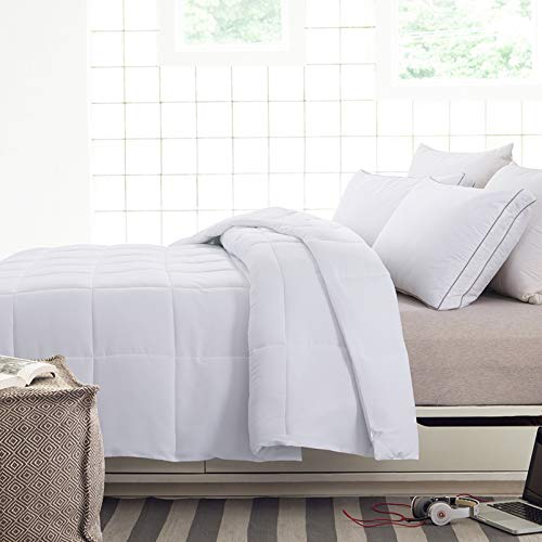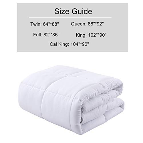 - Soft & Lightweight Comforter------Our king comforter uses a new breathable shell and filled with 160 gsm of soft microfiber material. The microfiber fabric cover is extremely soft and noiseless and friendly to those sneezing with goose down and feather bedding.The comforter is lightweight and fluffy , not too heavy to pressure you.
