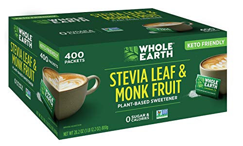 Details: Whole earth sweetener stevia leaf and monk fruit natural* sweetener blend is ideal for sweetening tea, coffee, smoothies, yogurt and other beverages or food. This zero calorie product is made with stevia and monk fruit extracts and erythritol.we use only non-GMO ingredients and our blend contains no preservatives four ingredients: erythritol, stevia leaf extract, natural flavors and monk fruit extract. Whole earth sweetener stevia leaf and monk fruit natural* sweetener blend packets are gluten-free and kosher certified. They’re a great complement to a Keto diet, perfect for sweetening Keto food and drinks. Whole earth sweetener Co. Is dedicated to providing our customers with a wide variety of great tasting lower and zero calorie sweeteners made from the best ingredients and using conscientious practices.*for more information on our natural standard and ingredients visit our website.**all trademarks used herein are owned by their respective owners and the products advertised on this site are not sponsored, endorsed, sold or promoted by those trademark owners.