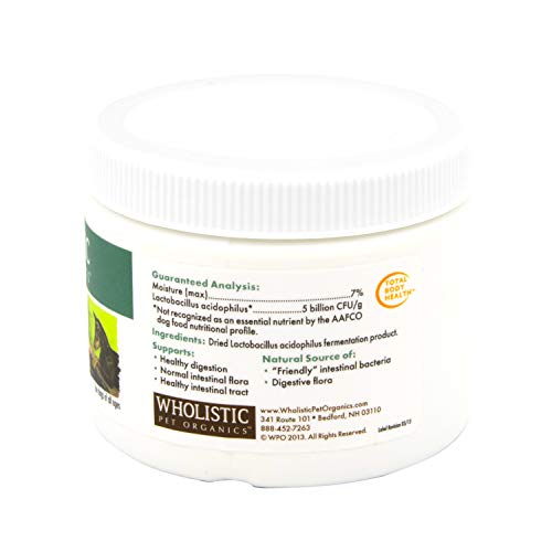 Details: Wholistic Acidophilus is a premium cultured strain of Lactobacillus acidophilus, beneficial bacteria commonly found in the intestinal tract where it is especially important to your pet’s health. Acidophilus is considered a “probiotic” bacteria because it helps to maintain intestinal health by maintaining a normal healthy balance between “good” and “bad” intestinal bacteria. Extremely concentrated with 5 billion CFU’s/g.