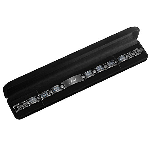 Details: Blending elegance with strength, this super lightweight bracelet from the Willis Judd Dad collection will make the perfect gift for your dad or grandad this Fathers Day, Birthday Or Christmas. Weighing in at just 24 grams, it is made from finest quality black titanium and features carbon fiber. It feels so light you’ll hardly know you are wearing it! Measuring 8.5inch long and approx. 1.2cm wide. The front of the center plate is engraved DAD and the back of the center plate is engraved Love You Dad, making this a perfect fathers day, Christmas or birthday gift. It comes packed in an impressive black velvet bracelet box at no extra cost. Also included in the price is an easy-to-use Link Removal tool, allowing you effortlessly to adjust the bracelet to your requirements from the convenience of your own home. What’s more, we have a no-quibble, money-back return policy. Hypoallergenic, this bracelet will not irritate skin. Willis Judd is proud to be selling this delightful bracelet on Amazon – please read feedback from our satisfied customers.