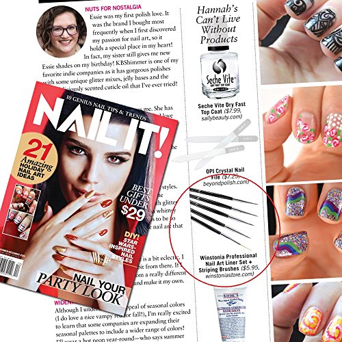 Details: Being a nail artist, you want the very best tools to help you create crisp and clean lines; to fill in beautiful colors for gorgeous art. This is why we created Winstonia FINE LINE Nail Art Brushes Set - the very best tool and brushes set you need for all that fine nail art designs. This nail art brushes set includes four lining brushes with finely tapered, cylindrical heads and a striping brush that works together to create intricate detail you won't get with standard brushes.