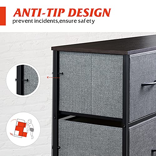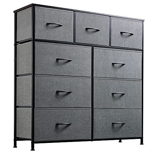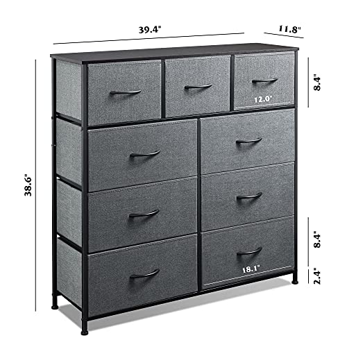 Details: WLIVE 9-Drawer Fabric Dresser, Storage Chest for Bedroom, Hallway, Nursery, Entryway, Closets, Fabric Bins with Sturdy Metal Frame, Wood Top, Easy Pull Handle, Textured Print Drawers, Charcoal Gray