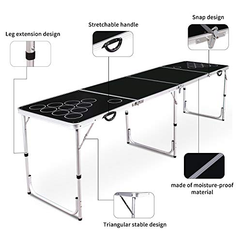 - Portable Beer Pong Table: This portable beer pong table has an 8’x 2’ playing surface, can sit 10 people. Perfect for tailgating, house parties, bars, fraternities and more.