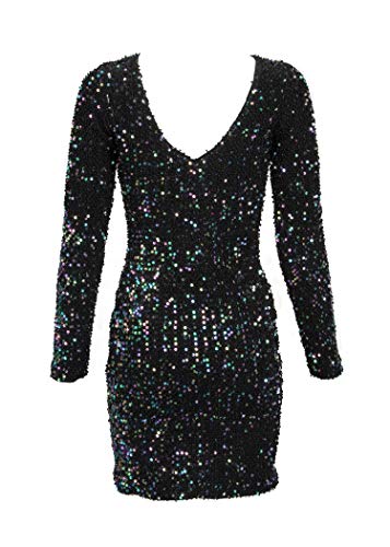 Details: Dark Mermaid Black Purple and Blue Glitter Sequin Longsleeve Cocktail Dress Truly dazzling! Shine brighter than the rest in this sparkling sequins number! Shimmering black, blue, and purple sequins from top to bottom lend a glamorous touch to this eye-catching dress. Long sleeves, a V-cut back and a body hugging fit turn this number into one head-turning take on special occasion style! Available in sizes S, M and L. Made out of 100% polyester (shell) and 95% polyester and 5% spandex (lining). Show off your impeccable style with this sparkling sequin dress! Perfect for ✔️Party outfits ✔️Festive events ✔️Special occasions ✔️Thanksgiving ✔️Christmas, Holiday Parties, New Years Eve ✔️Weddings ✔️Bridesmaid dresses ✔️Bachelorette parties ✔️Cocktail Parties ✔️Clubwear ✔️Prom dresses ✔️Glitzy glam dresses ✔️Whenever you want to shine brighter than the rest in a sparkling dress