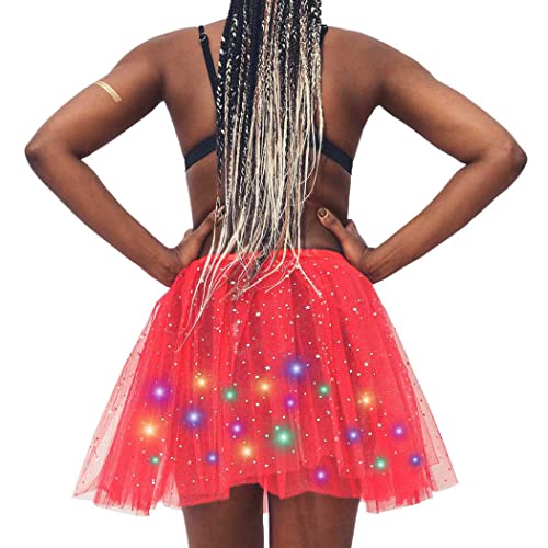 - Festival led star skirt is made of hard yarn, classic style, lightweight, fluffy, semi see-through, breathability and great in feeling. Comfortable and natural while long time wearing. 3 layers tulle tutus, more fluffy and beautiful. The womens tutu can be matched with the different costume or be worn with leggings as skirts.