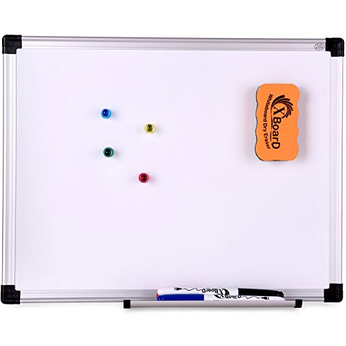 Details: XBoard Double-sided magnetic Whiteboard Set The premium 9 set is helpful for multiful-use. With the whiteboard, you can pin notes, messages, pictures, memos, calendars, menus, reminders and more by the dry erase set or the 4 magnets for display and organization. Aluminum framed whiteboard ensures strength and durability. It has rounded corner caps, which helps prevent scratches. Make your life more organized! Specifications Brand: XBoard Product Type: Whiteboard Set Package: 1 dry erase board & 1 Magnetic Dry Eraser & 3 Dry Erase Markers & 4 Push Pin Magnets Dimensions: 15 x 12 inch Magnetic: Yes Style: Wall-Mounted Reversible: Yes Frame Material: Sliver anodized aluminum Corner Material: Nylon Surface Material: Coating Steel Includes 1 x Double-sided magnetic dry erase board 15x12; 1 x Magnetic Dry Eraser 3 x Dry Erase Markers 4 x Magnets Warranty Reminder Recommend to mount in the spaces with light traffic. About XBoard XBoard is a professional manufacturer of high quality board, produce hundreds of thousands of board products every month, from magnetic whiteboard, melamine whiteboard, blackboard, fabric board, cork board and Easel-Style Dry Erase Boards, etc. Each piece is rigorously tested for durability. Each piece is constructed with uniquely tough materials to reduce the risk of damage during shipping. XBoard keeps bringing best writing experience to customers all over the world!