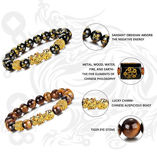 - 【Feng shui bracelet set】: The set contains 4 different styles of feng shui bracelets, five-element zodiac bracelets, tiger's eye bracelets, Sanskrit bracelets, obsidian bracelets. The styles are all classic and full of strong Chinese flavor, which is enough to meet your wearing needs.