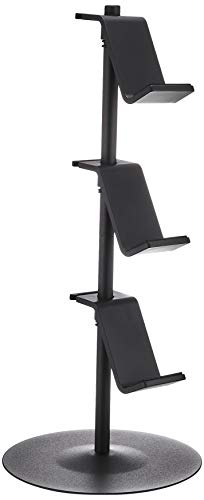 Details: A game controller organizer with levels that are adjustable and can be spun around the axis of the sturdy steel rack. Three tiers for storing game controllers, headphones, or handheld electronics. Special hooks hold wires in place, acting as a charging station for your devices.