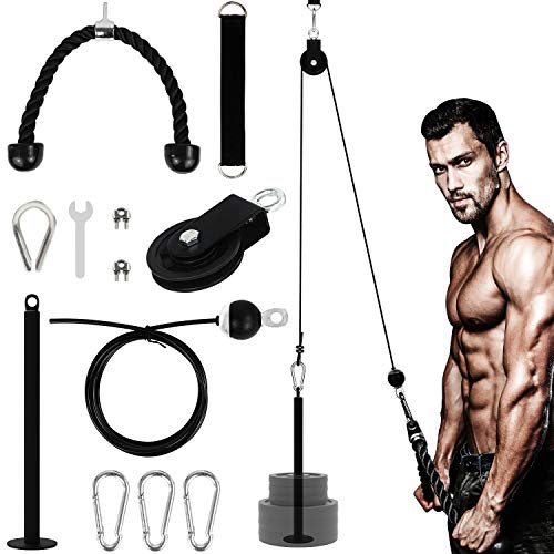 - 【Easy to Assemble & Portability for Home Gym】Our fitness Pulley Cable System can be installed anywhere you want as power rack, pull up bars or beams. Just add weight plates, connect with the pulley cable and finish! Designed into simple installation and space saving training equipment, its definitely prefect for home gyms.Suitable for carrying and traveling.