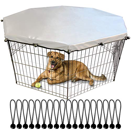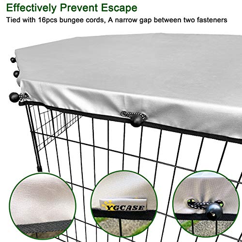 - PREVENT ESCAPE- The protective net is tightly tied with 16pcs bungee cords, so there is just a narrow gap between two fasteners. It effectively prevents the puppy from jumping up and out of the pen