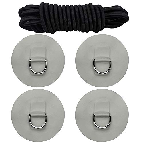 Details: You are purchasing a SUP deck bungee kit. Product features 1.This kit includes: 12' (3.6 M) of 4.5MM bungee cord 4 Stainless steel D rings Glue is not included. 2.For sup board. 3.Capable of customizing for specific needs No glue for you. No glue on the back of the d ring patch. 4 Stainless steel D rings and 12' (3.6 M) - bungee cord. For SUP deck rigging kit - no board and no glue. Color : the PVC patch is grey and the bungee cord is black.