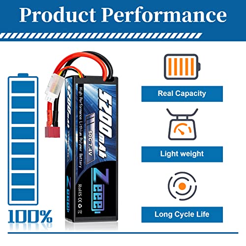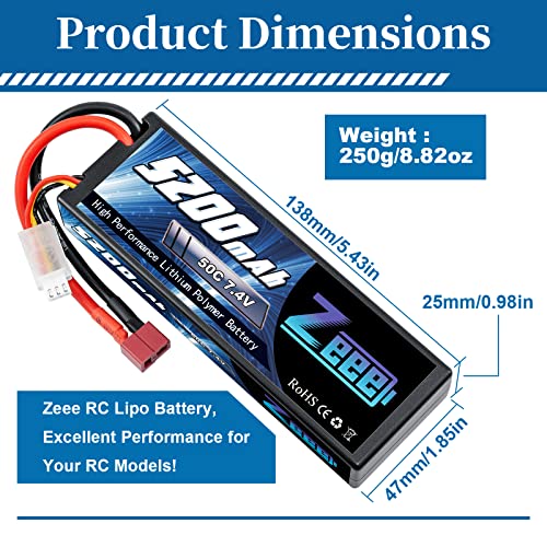 - Zeee 7.4v lipo battery 5200mah with 50C discharge rate hardcase offers you very high power and very long run time for your RC cars.