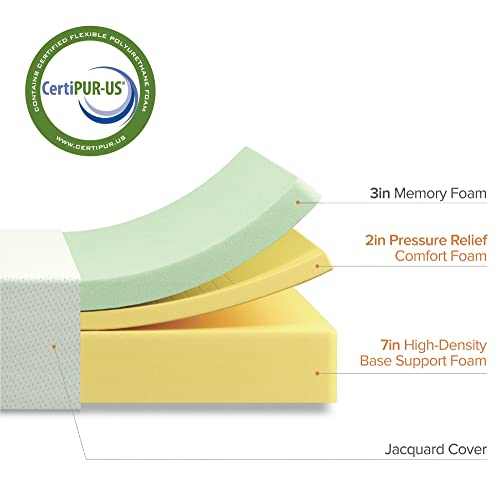 - PRESSURE - RELIEVING FOAMS - 3 inches conforming memory foam, 2 inches soft, airflow enhancing comfort foam, and 7 inches durable, high density base support foam; ideal for side sleepers and petite to average weight sleepers